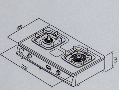 名稱:台面放置爐機體尺寸:700*400*210(含爐架)顏色/材質:烤漆/不銹鋼點火方式:壓轉式+電子點火瓦斯消耗量:LPG共8.1KW(0.57kg/h) NG共8.0KW(6880kcal/h)價格不包含安裝費 安裝費另計詳細說明:1.防乾燒自動關火關瓦斯2.油溫過熱保護裝置3.熄火安全裝置4.兒童安全鎖5.專利清潔盤6.國家認證節能商品