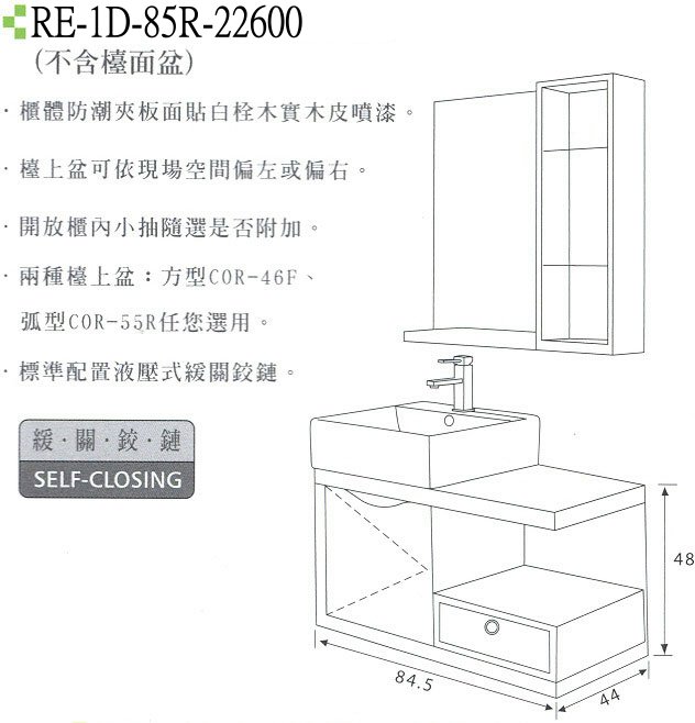 ●RE-1D-85R-22600(不含檯面盆)