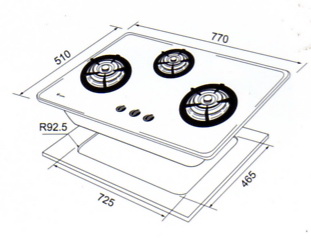 名稱:三口台面爐型號:JTL-3002A規格:770*510*125挖洞尺寸:725*465/92.5點火方式:電子連續點火瓦斯消耗量: ●LPG:11.0KW ●NG1:11.0KW熱效率:45%以上面板材質:強或玻璃 黑/白價格不包含安裝費 安裝費另計詳細介紹:1.強化玻璃面板,堅固耐高溫,耐磨好清洗2.鑄鐵爐架,安全不滑鍋3.日式三口爐設計可同時使用4.日本製熱電偶安全裝置,使用更安心5.榮獲節能標章,省瓦斯省荷包