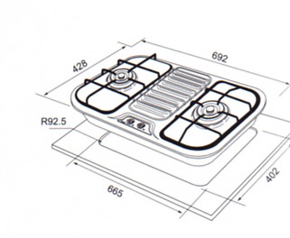 名稱:雙口台面爐型號:JTL-2201規格:692*428*125挖洞尺寸:665*402*92.5點火方式:電子連續點火瓦斯消耗量: ●LPG:7.3KW ●NG1:7.3KW熱效率:45%以上面板材質:不鏽鋼 顏色:不鏽鋼價格不包含安裝費 安裝費另計詳細介紹:1.防空燒裝置,避免空鍋時溫度過造成鍋具著火2.強化玻璃面板,堅固耐高溫3.鑄鐵爐架,穩固不滑鍋4.可選擇左爐防空燒或右爐防空燒5.日本製熱電偶安全裝置,使用更安心6.榮獲節能標章,省瓦斯省荷包