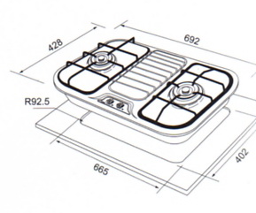 名稱:雙口台面爐型號:JTL-2001規格:692*428*125挖洞尺寸:665*402*92.5點火方式:電子連續點火瓦斯消耗量: ●LPG:8.0KW ●NG1:8.0KW熱效率:45%以上面板材質:不鏽鋼 顏色:不鏽鋼價格不包含安裝費 安裝費另計詳細介紹:1.不鏽鋼面板,堅固耐高溫,耐磨好清洗2.大型鑄鐵爐架,穩固不滑鍋3.多段火力微調設計4.日本製熱電偶安全裝置,使用更安心5.榮獲節能標章,省荷包