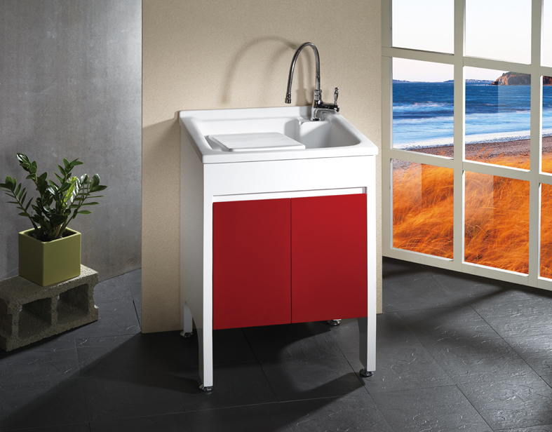 YF人造石洗衣槽-活動洗板+立柱