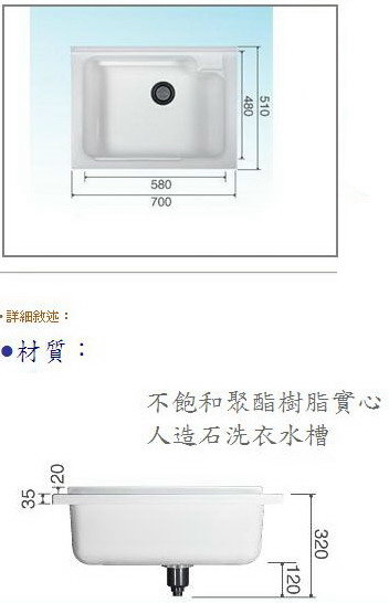 • 商品名稱: YF570人造石洗衣槽/活動洗板+鋁腳